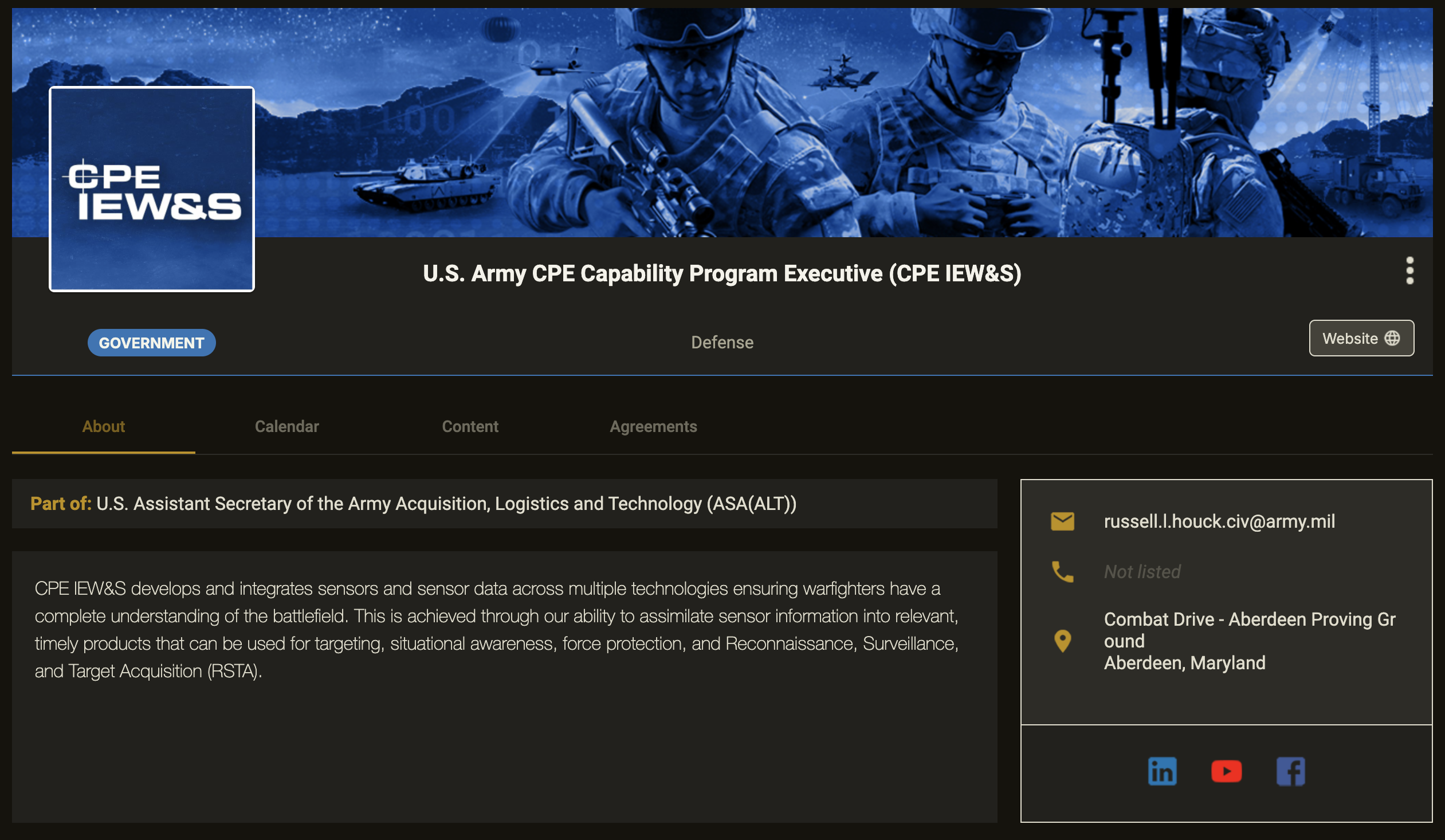 Vulcan is a virtual marketplace connecting government and industry for technology scouting and collaboration. Following SOCOM’s proven success with Vulcan, CPE IEW&S will utilize this tool to house multiple solutions in one place and welcomes industry to enter their solutions addressing CPE IEW&S’ most pressing challenges.